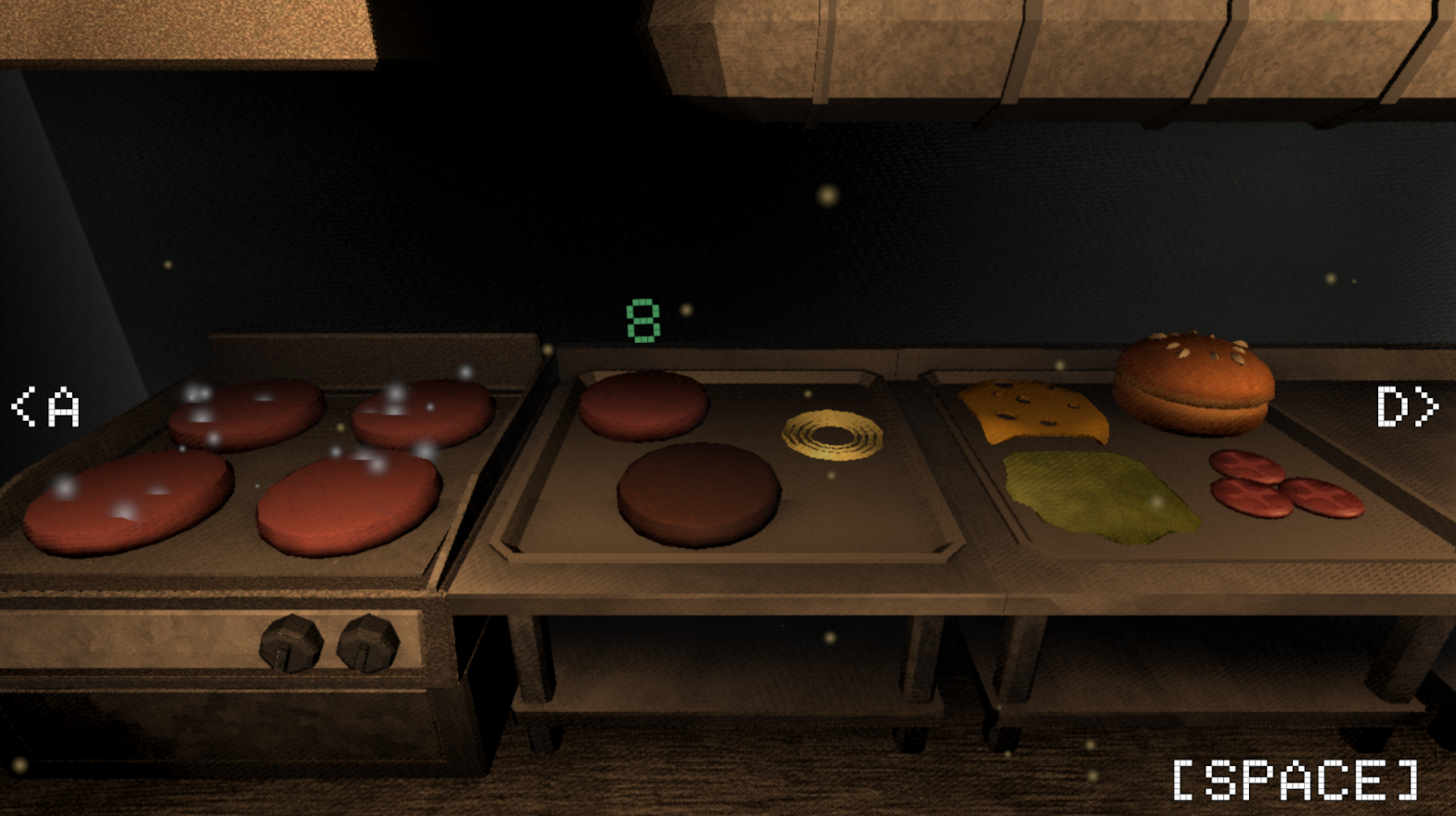 You play as a person working the night shift , but your customer aren't people and will do anything to get there meal ,but you noticed there hands are vulnerable to UV light and you us it to your advantage to keep them at bay while you work and wait until 6AM for the sun to rise. at least they pay for the meal right!